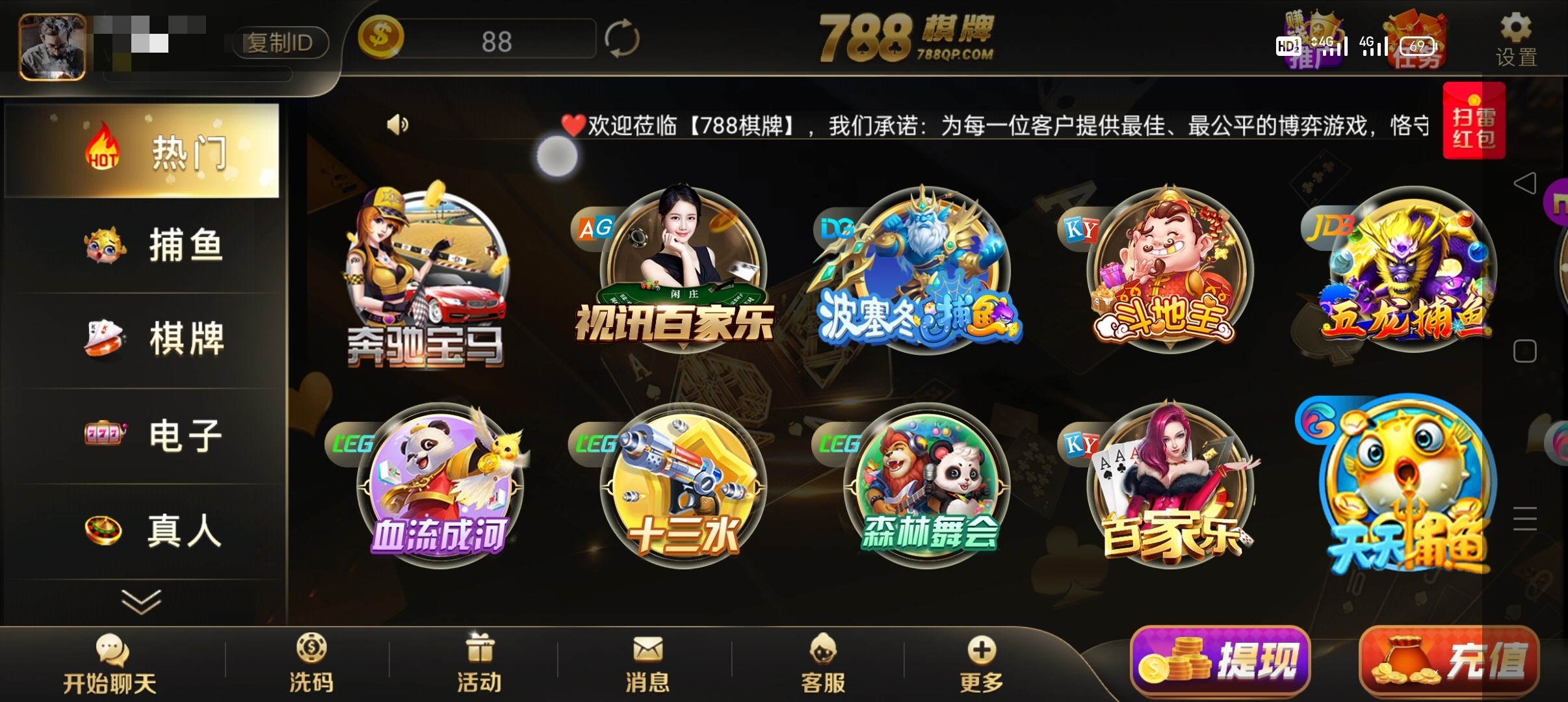 788棋牌送88.电话特邀碰瓷,给我打电话但是我手机号以前注册过客服叫我换一个手机号注册也给我送,应该不是查手机号的,链接80855.vip,这个流水比较高15倍流水,打出来230,能不能碰到看运气吧,纯分享