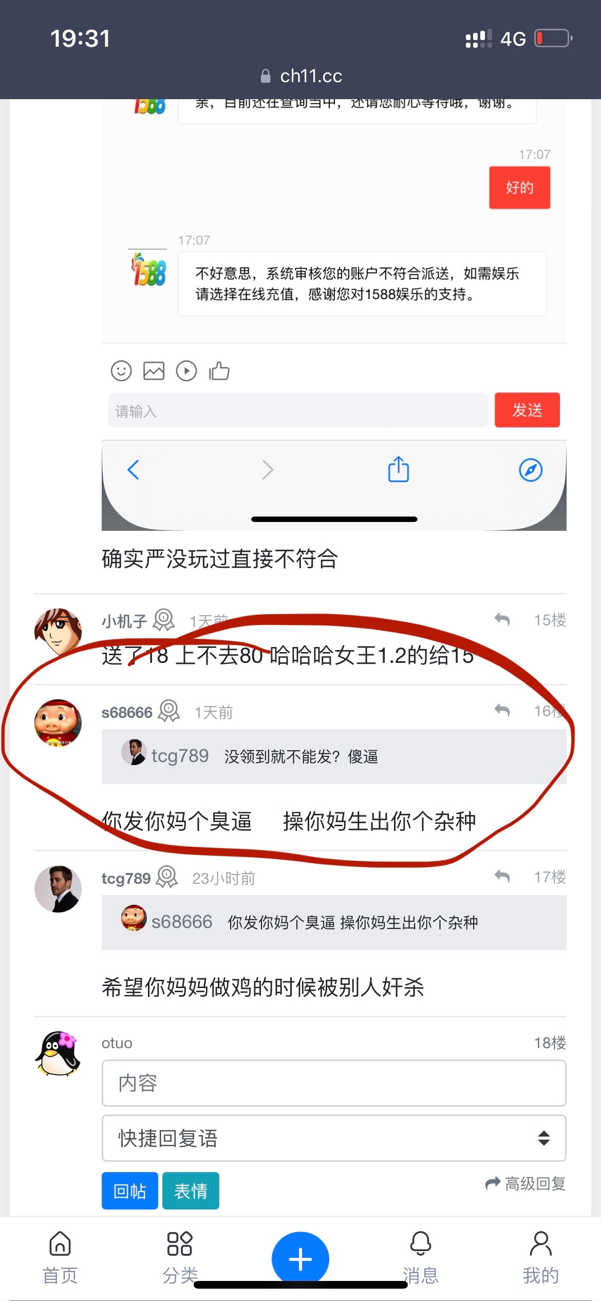 这个也是,注册没几天评论五条全是骂人的,这种杂种封了吧