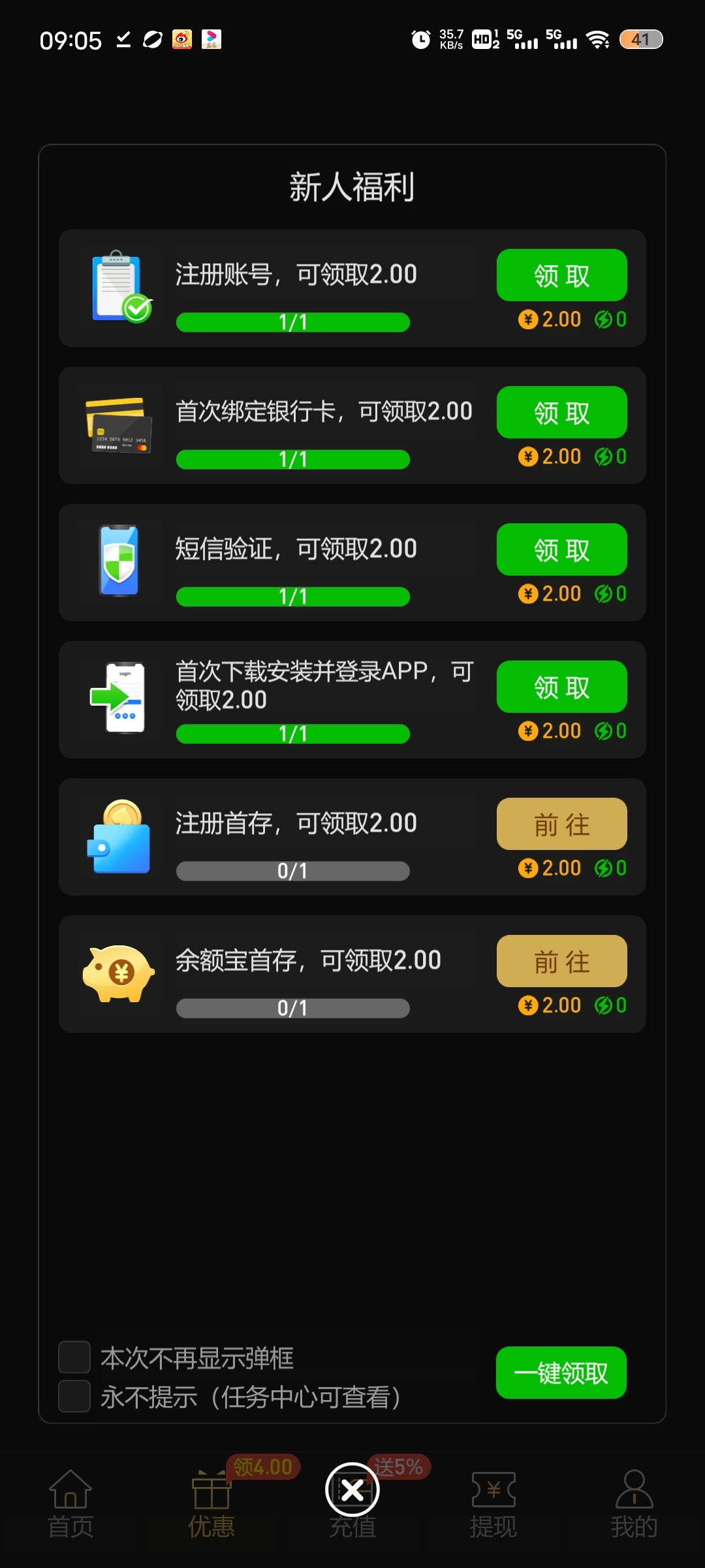 新人完成任务领彩金