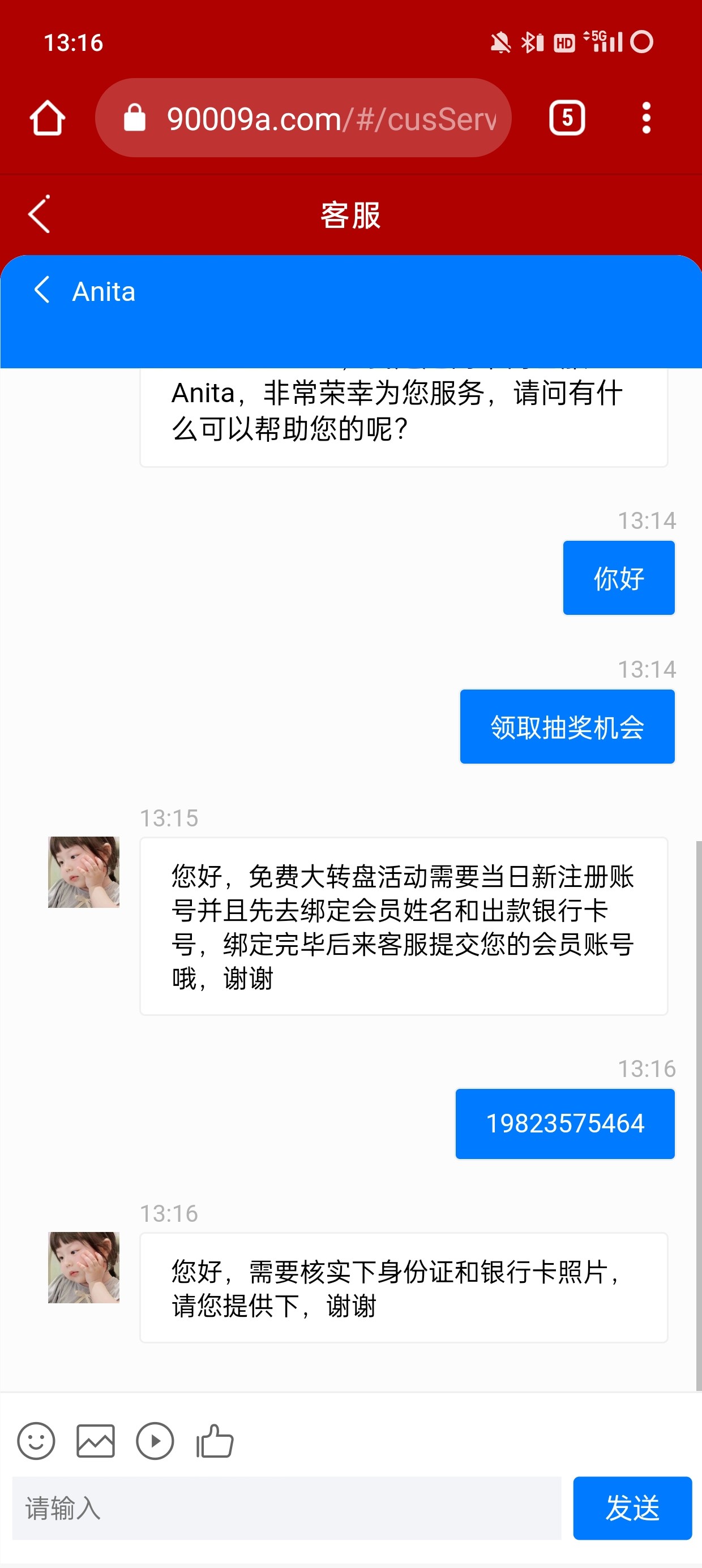 注册找客服领取五次转盘抽奖 我只抽到10 不会放图发的附件
