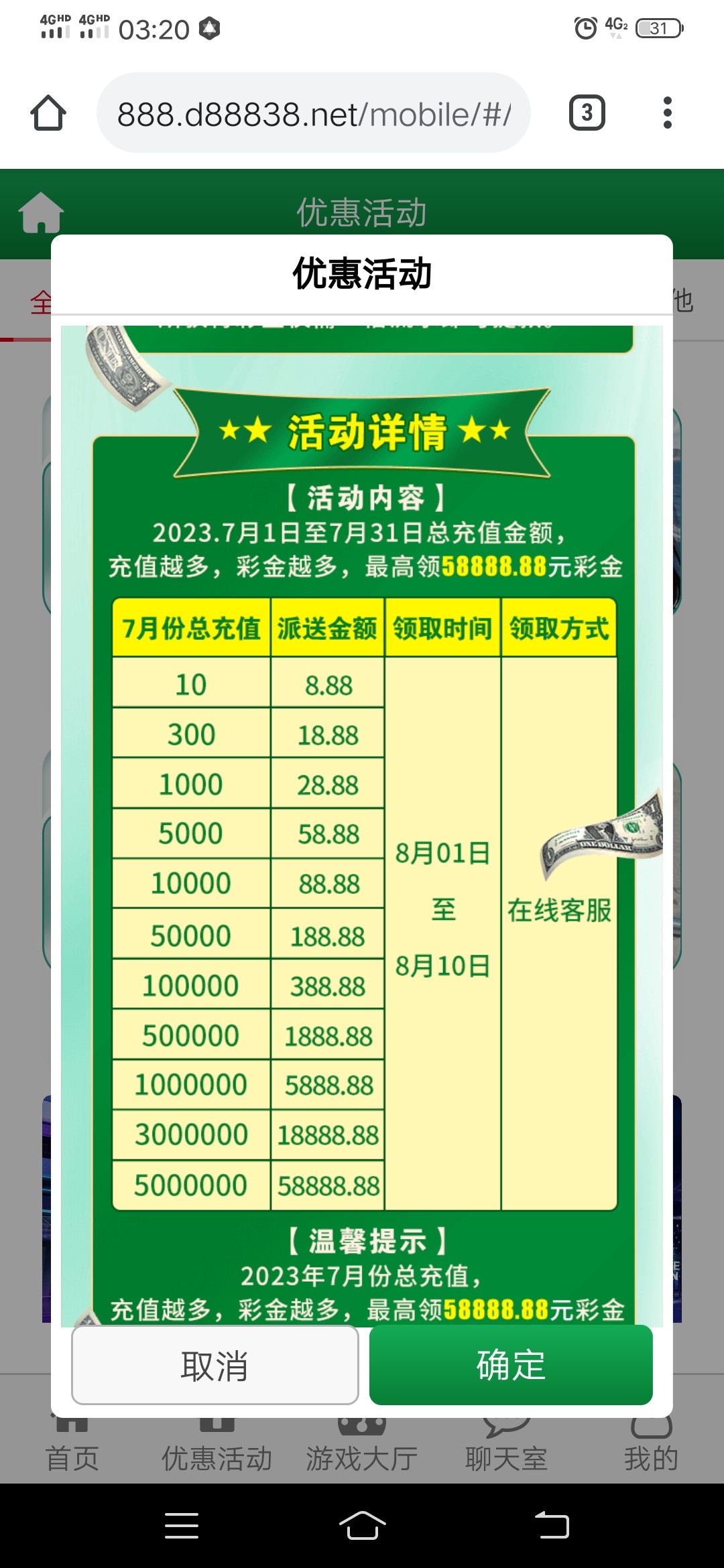七月份有充值过联系客服申请彩金