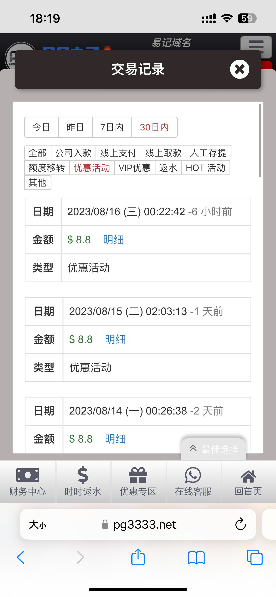 pg3333.net  好像新账号 找客服申请特邀每日签到彩金都有 我朋友手机号从来没打网赌都申请到了
