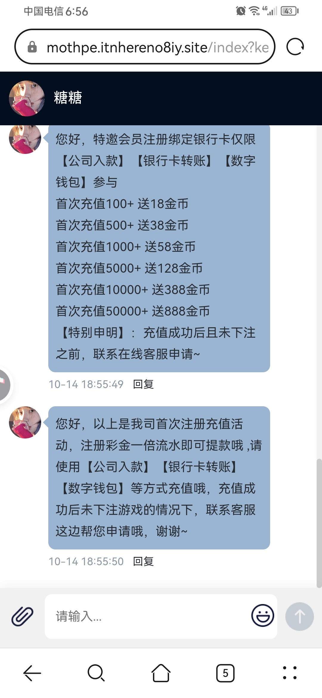 首先你记住你是白嫖,这是你得目的,不管狗庄说让你充值或者咋样,钱在你得兜里,谁也影响不了你