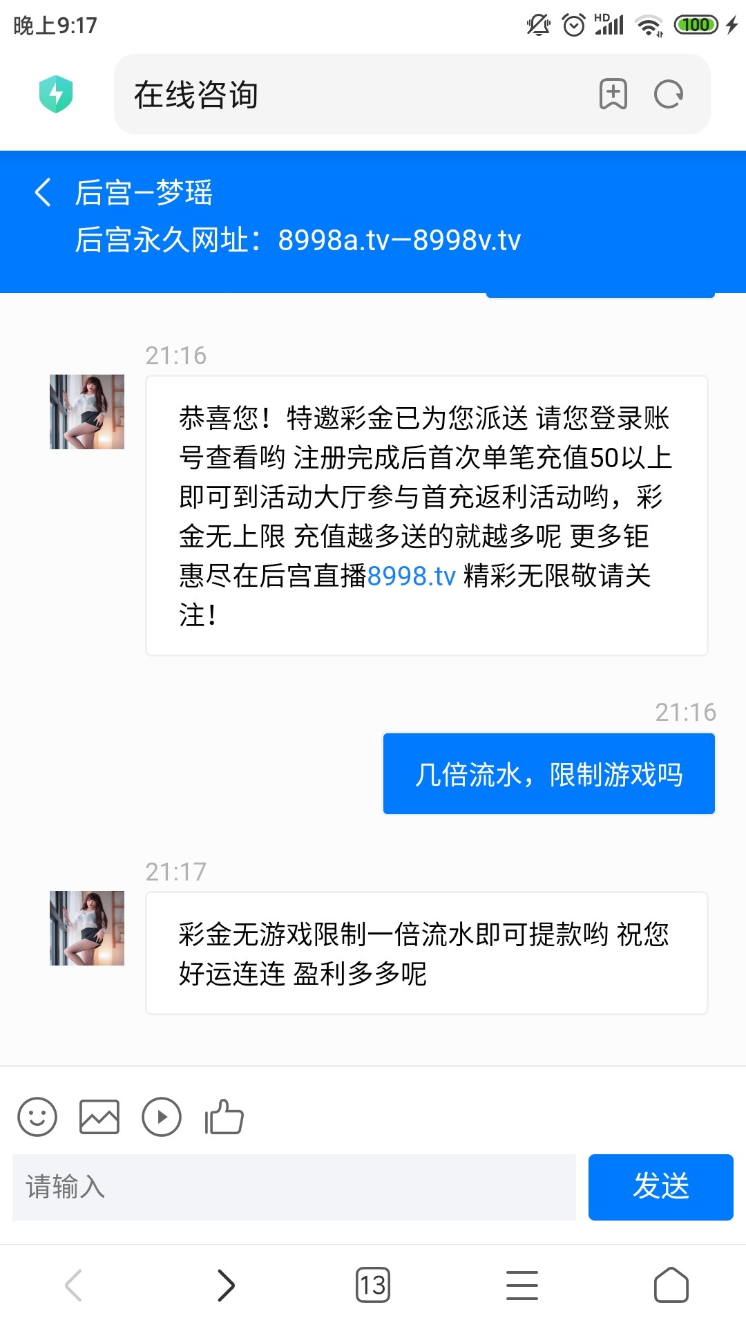 后宫直播有短信送58