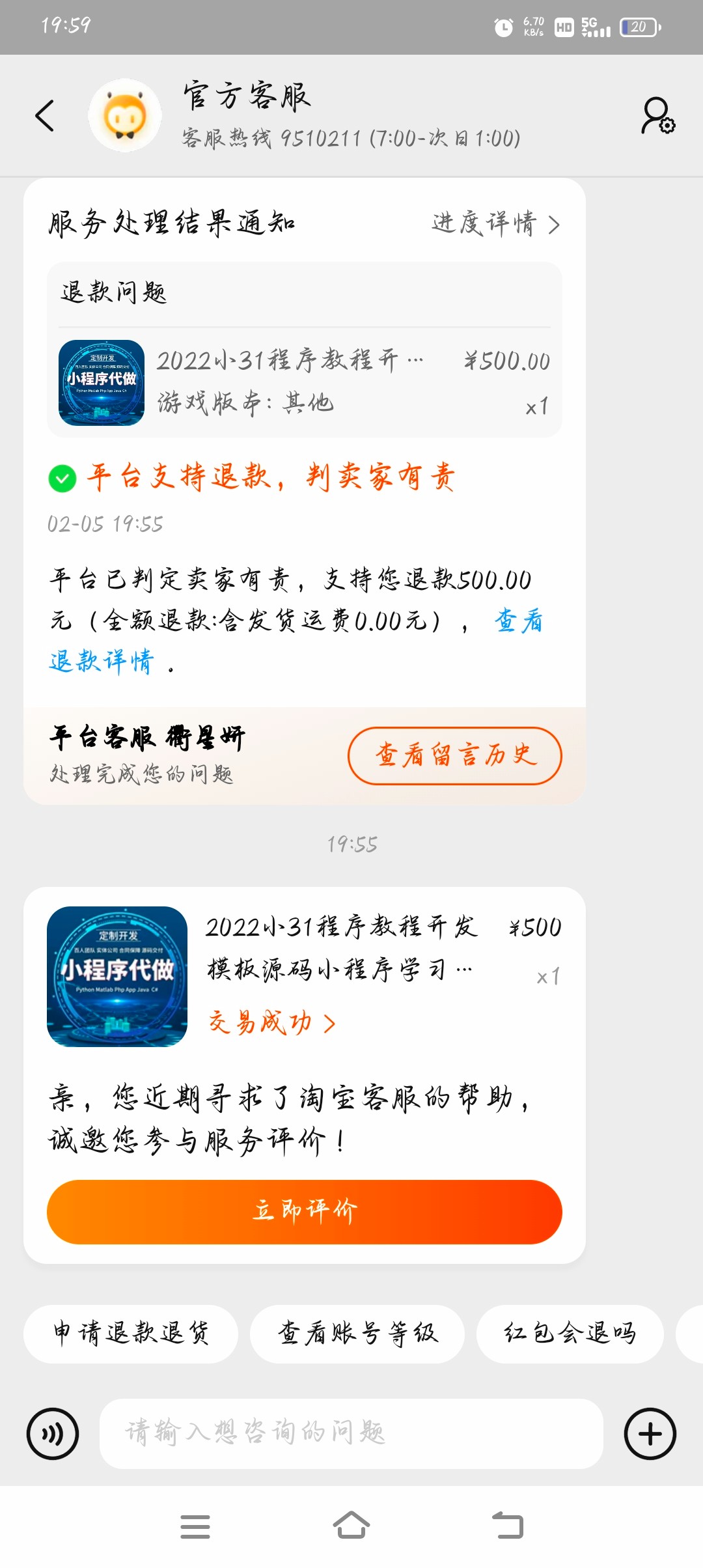 退款要看账号权重的