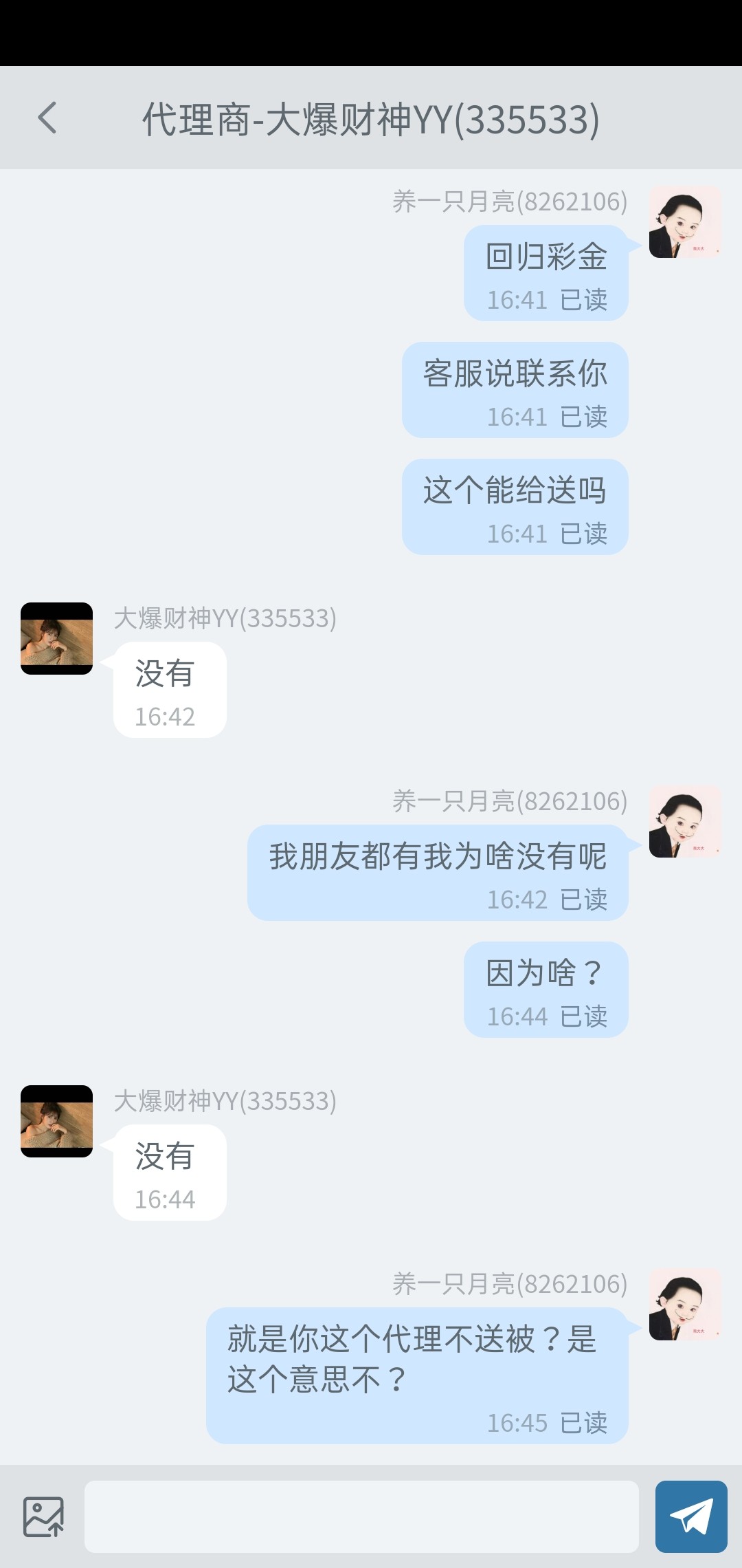 a515662 我那个代理是傻逼,一毛不送