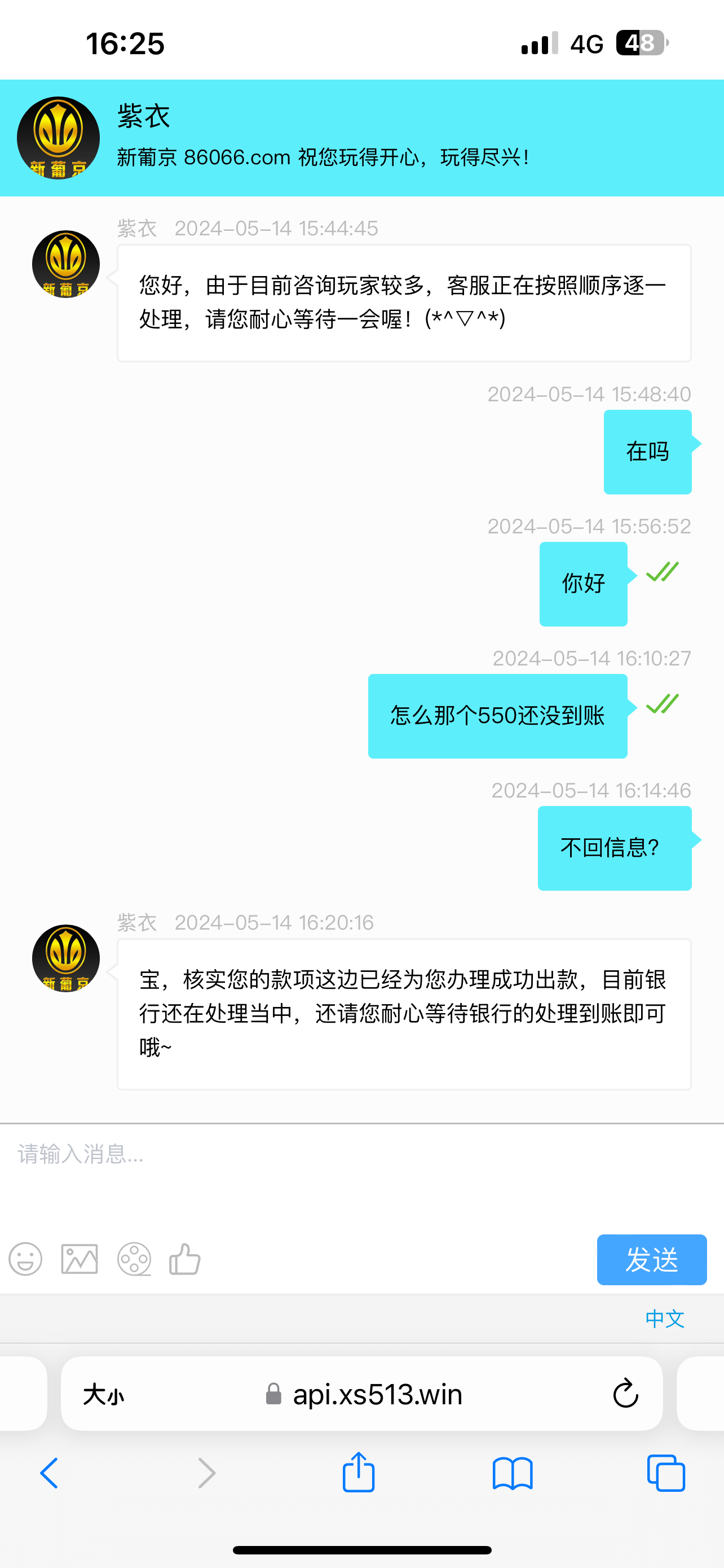 提现秒封 客服:亲,经查询:由于您的账号存在异常,相关部门需要进行检测,检测期间暂时无法登录,待检测结束后才可进入游戏哦~~