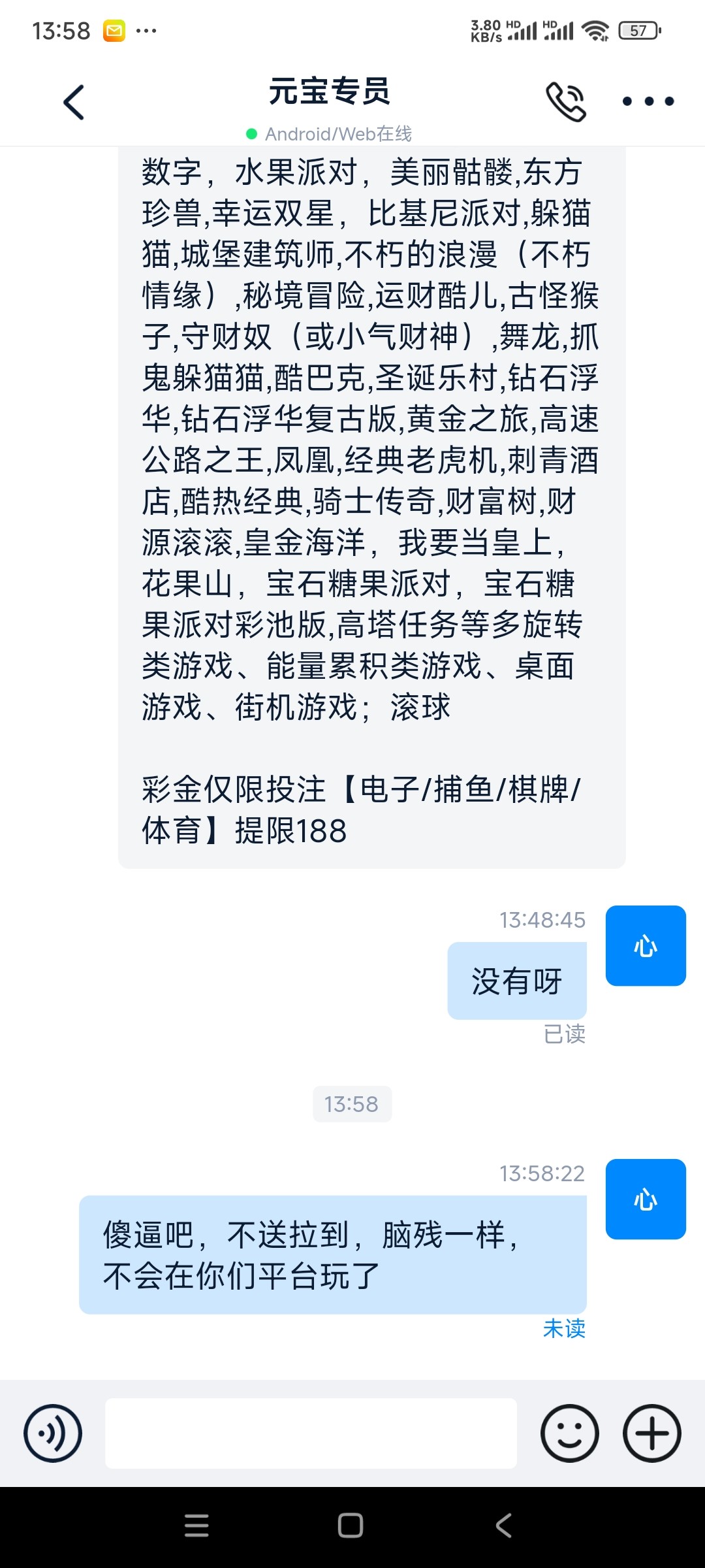 确实是傻逼平台,要么已读不回,都没送还给我发游戏规则
