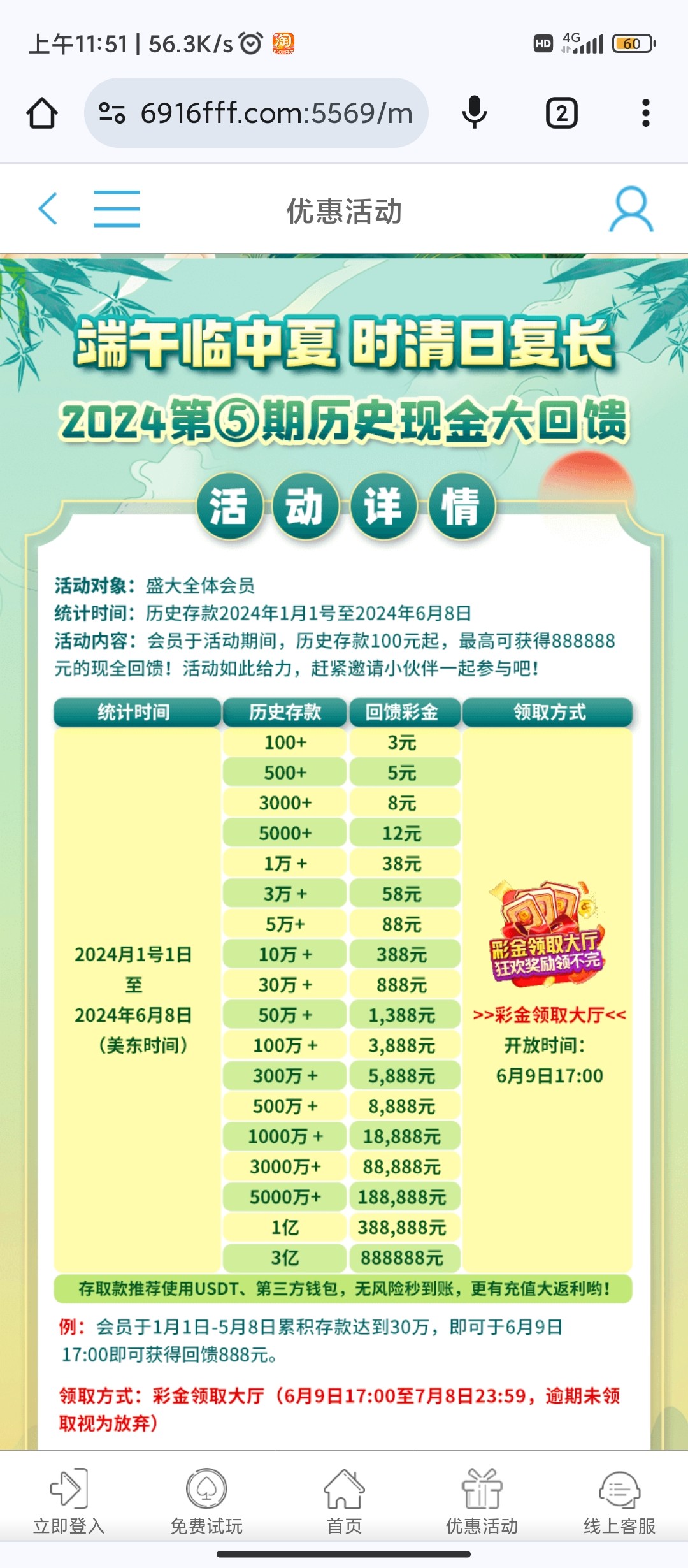 盛大端午回馈送彩金
