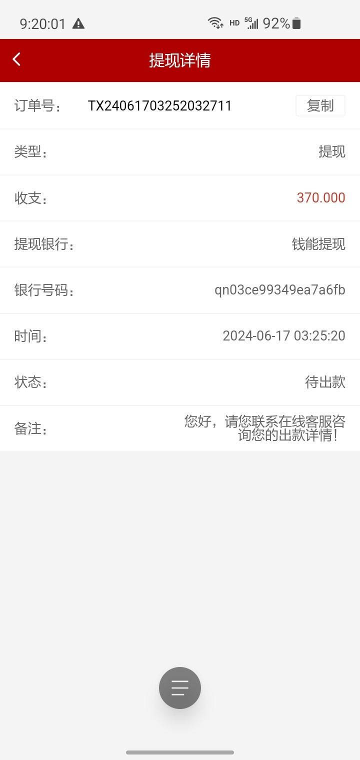 被卡提现了