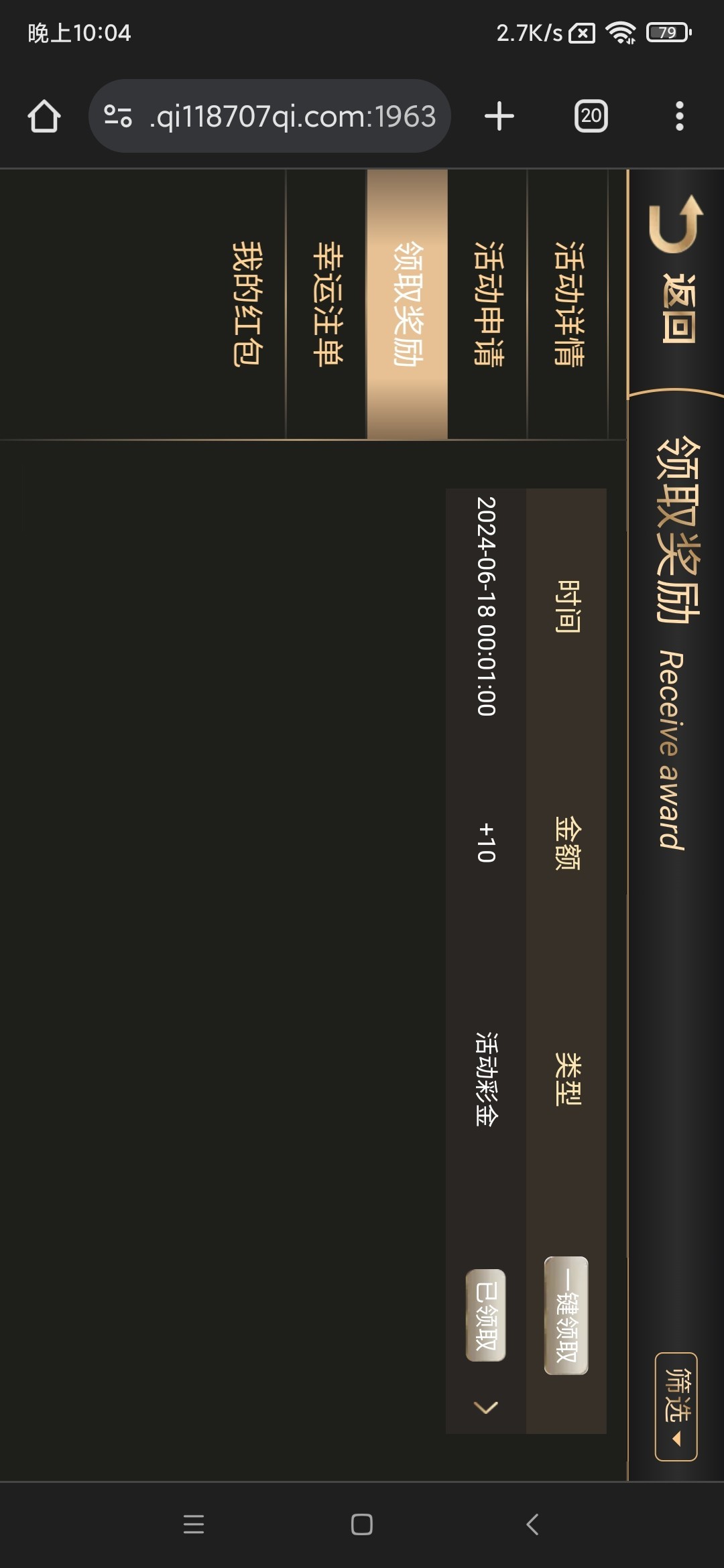 1187.com. 回馈10元的,好几个类似的台子没打出来,这个打出来了,200到账钱