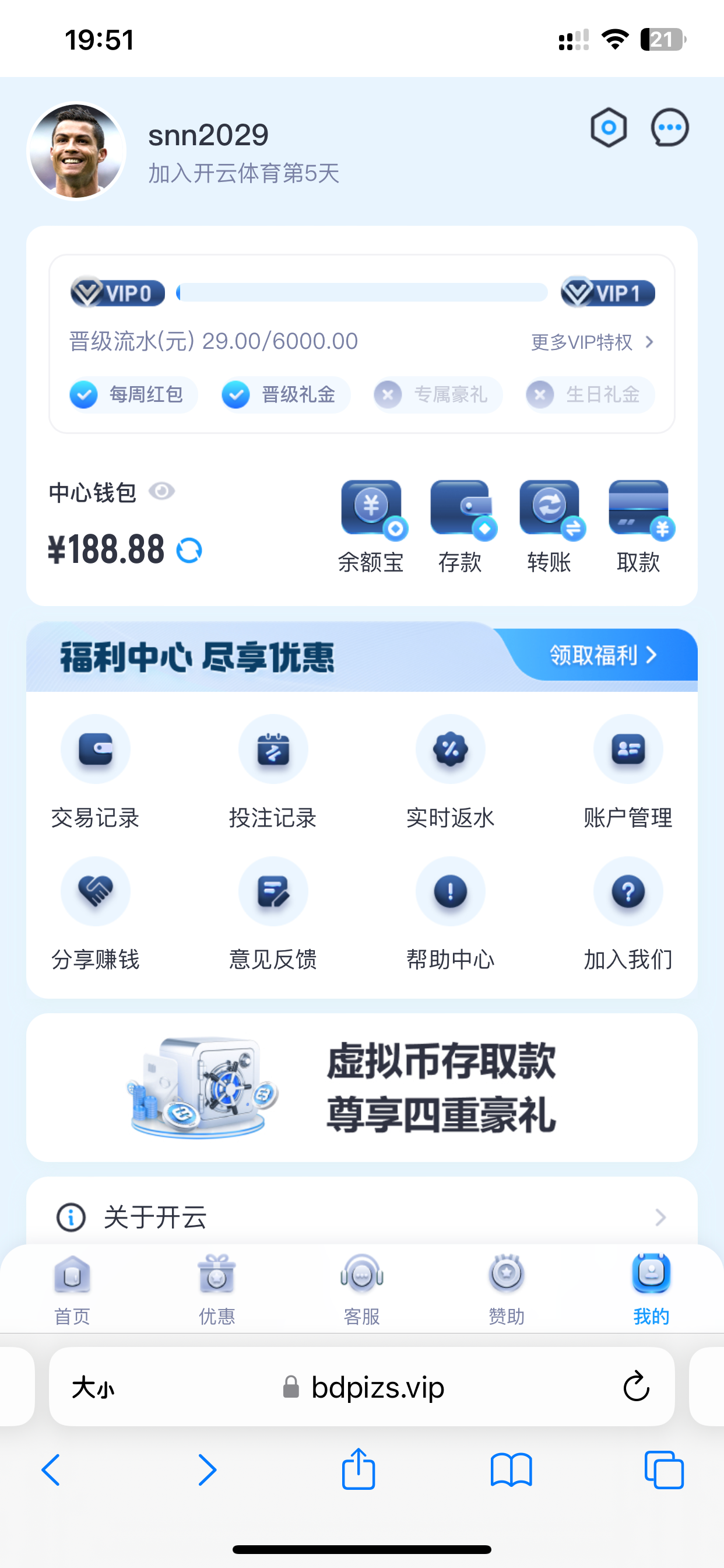 huya777 加入开云体育5天,就老用户回馈啦?还回馈188,而且你这个图流水才29,一分钱都没充过,能不能搞点别的图再来糊弄老哥们