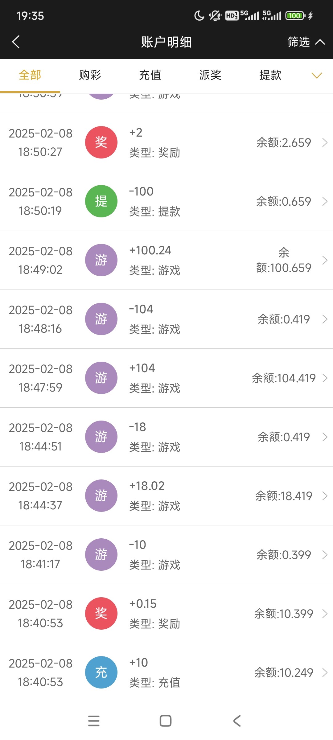 662刚注册那段时间,申请APP彩金,抢红包啥的,每次打到一两百提款都是没入,就一直没管他,去年五六月的时候抢个红包打到一百,然后充了五十,提了三百多,就一直没没入过了,都正常提现,偶尔充几十块。过年那段时间吃得太凶,输了以前的,上个月回了六七百。就是有两次充值不到账找客服等了半个多小时才到