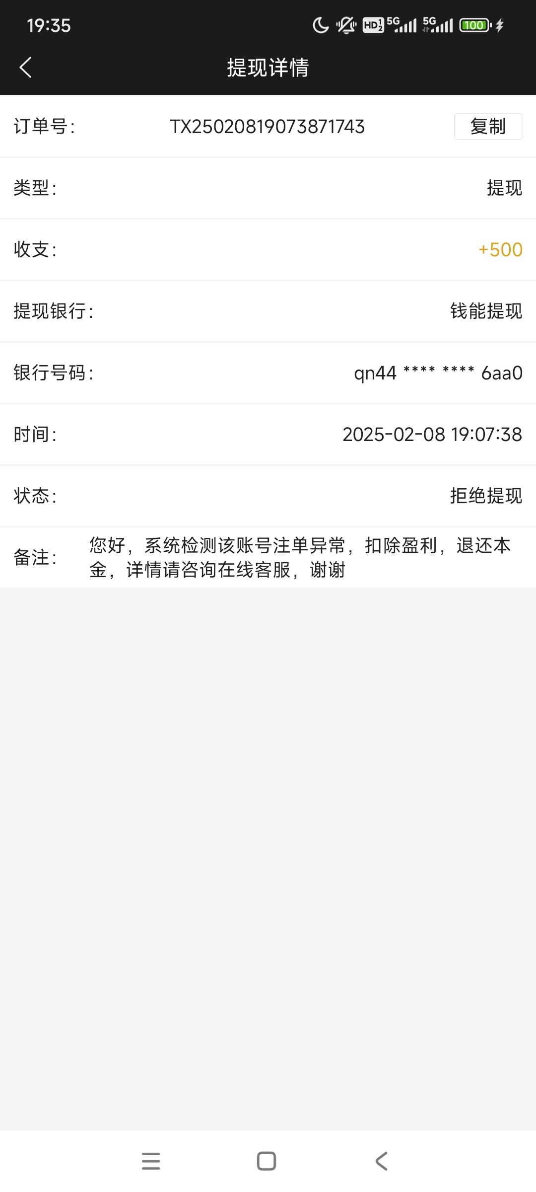 有个几个月没玩的号上去看到钱能还有10,充了去打PG赢了几块然后进AG街机,出来提100,然后扣掉,说套利彩金,我他妈都没领过彩金就直接是本金进游戏的,退回来10块之后我又进动物狂欢直接单压红狮子赢了500,提了又扣了,这次直接说注单异常,我一直以为662不会充值黑,真没想到啊这出生台搞这出