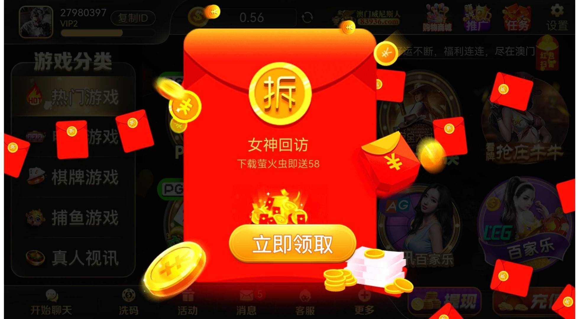 83936.com 登陆自动有的红包,不用申请,充值过有号的可以去看看