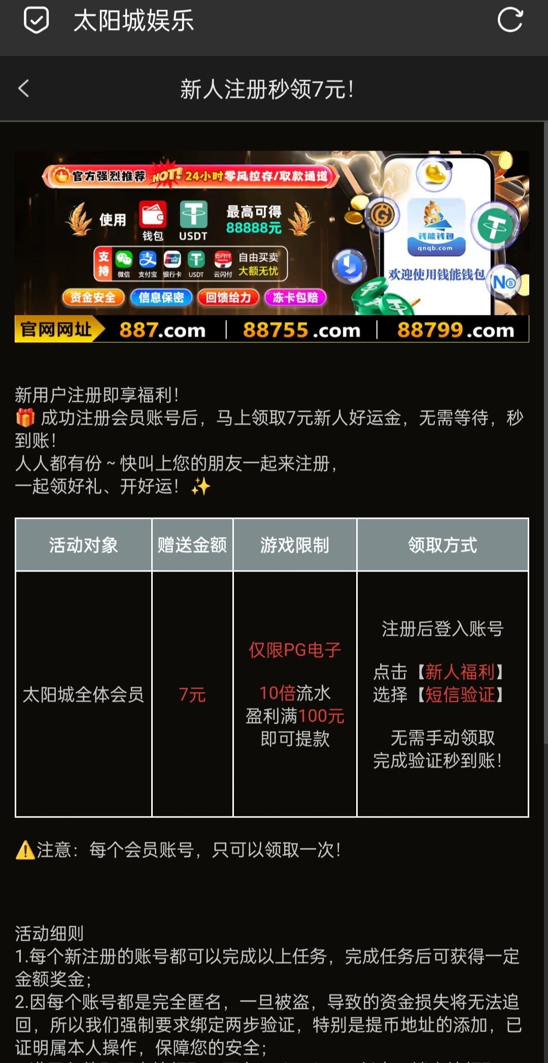 新用户注册自助验证送7彩金,具体自测吧