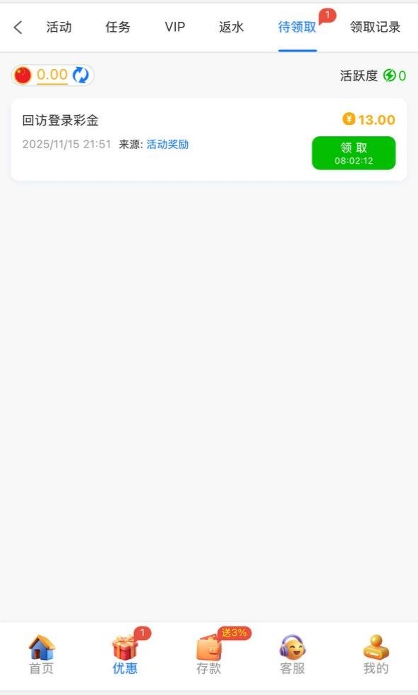 老用户有号登录看看有没有回访13彩金,有就有没有无视吧