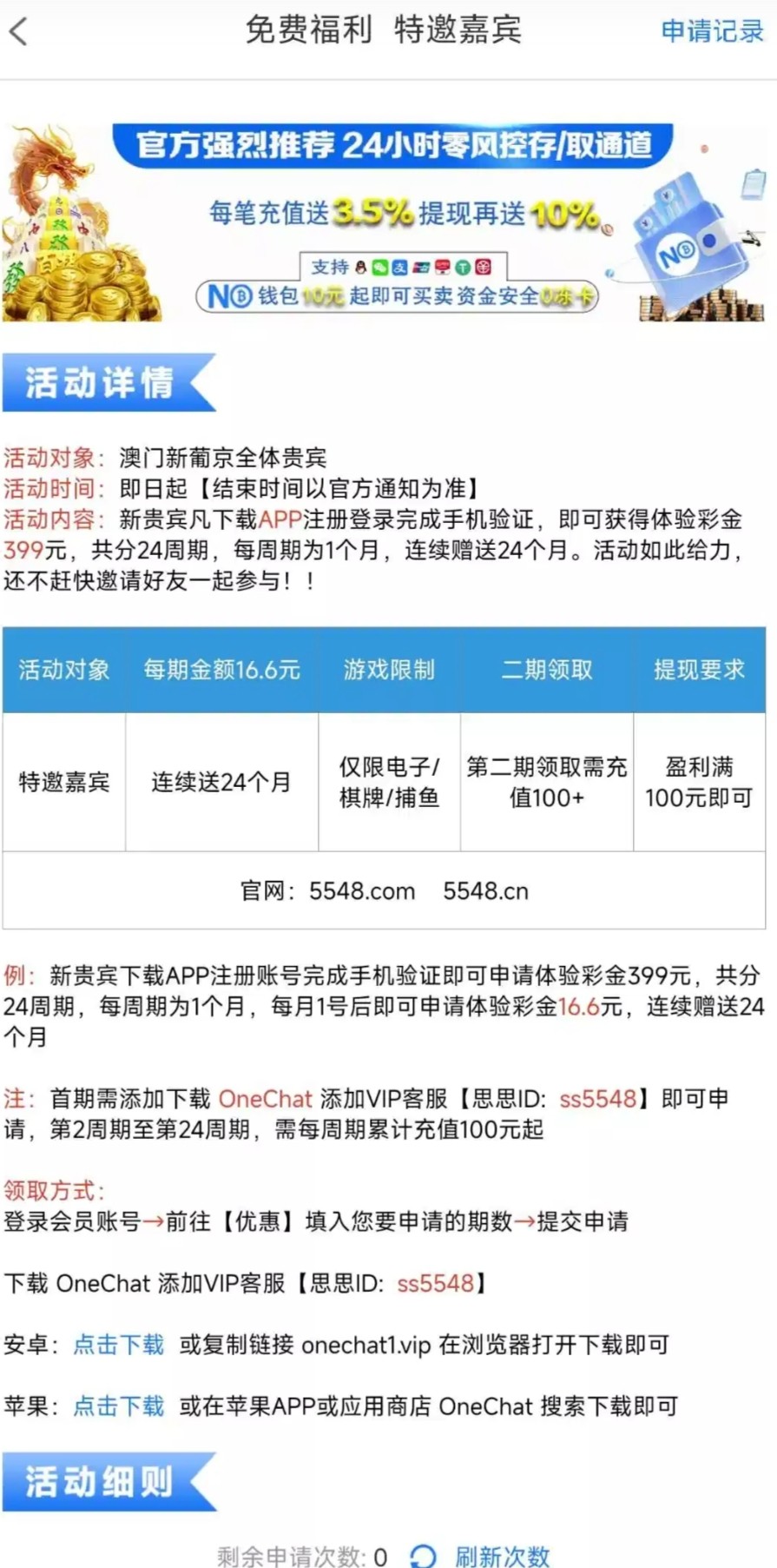 注册送16.6直接申请也行 我就是直接申请的 有的老哥去看看网址5548.com 图片上也有 没打出来