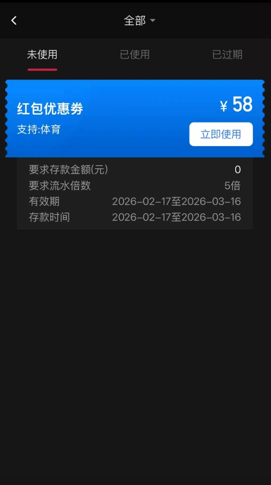 优惠券里直接领取,58免费彩金限制体育五杯水提,我两个号都领到了,我以前充值过不知道没充值有没有,官网ut88.com