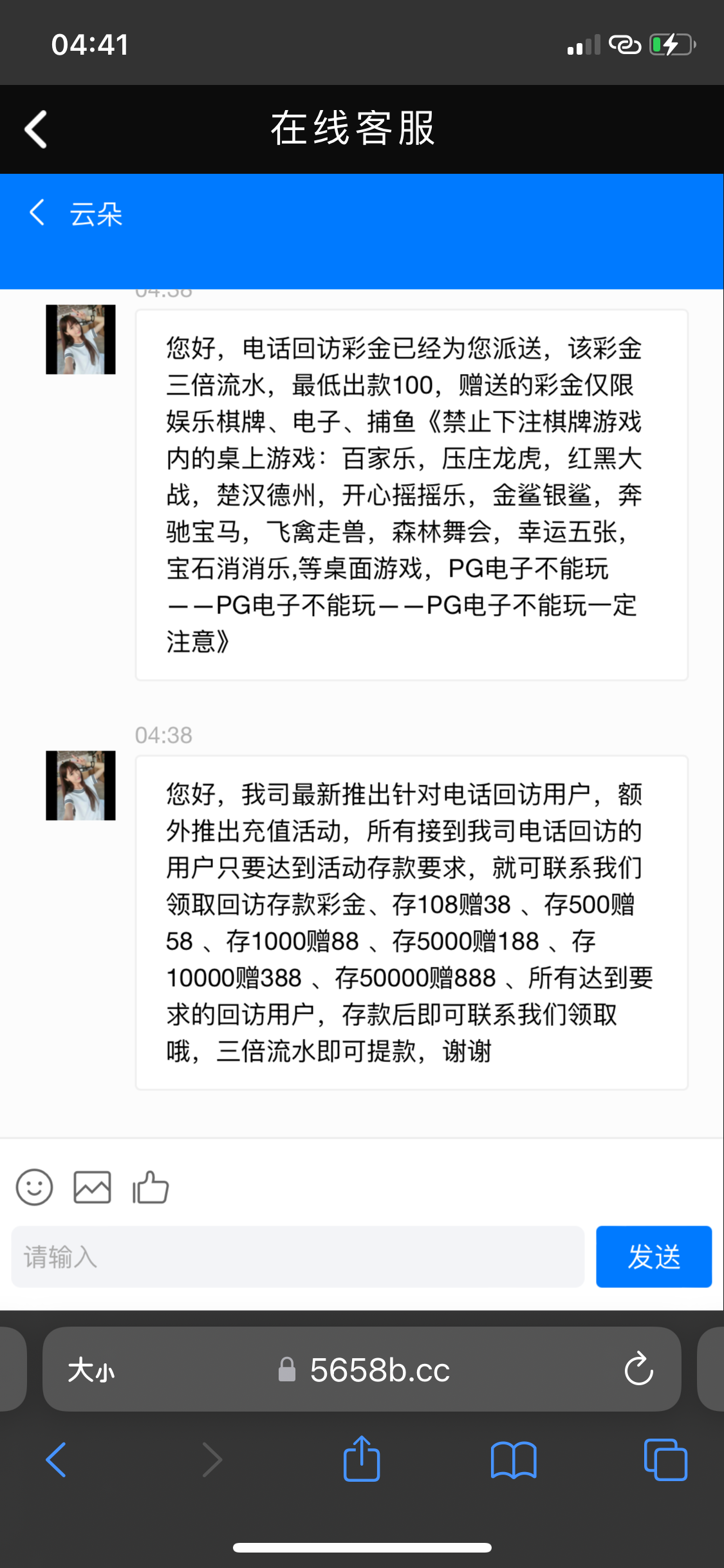 老用户注册找客服申请电话彩金,注意多吹吹牛逼,说什么要跳槽,要充值,怎么样都好,反正吹牛逼,10-88回访彩金,去