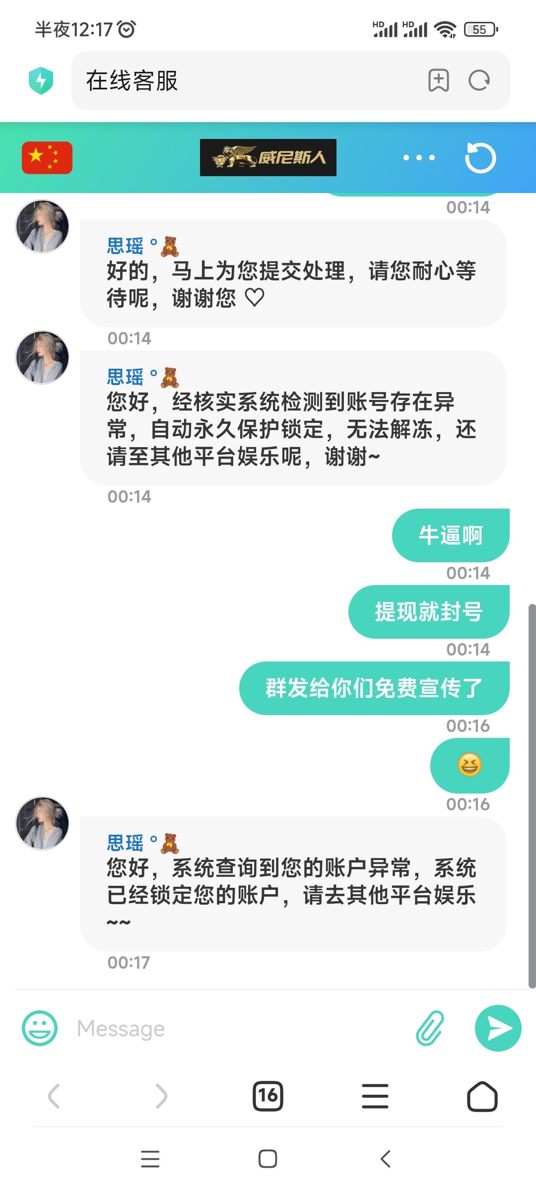 直接把我黑了封号