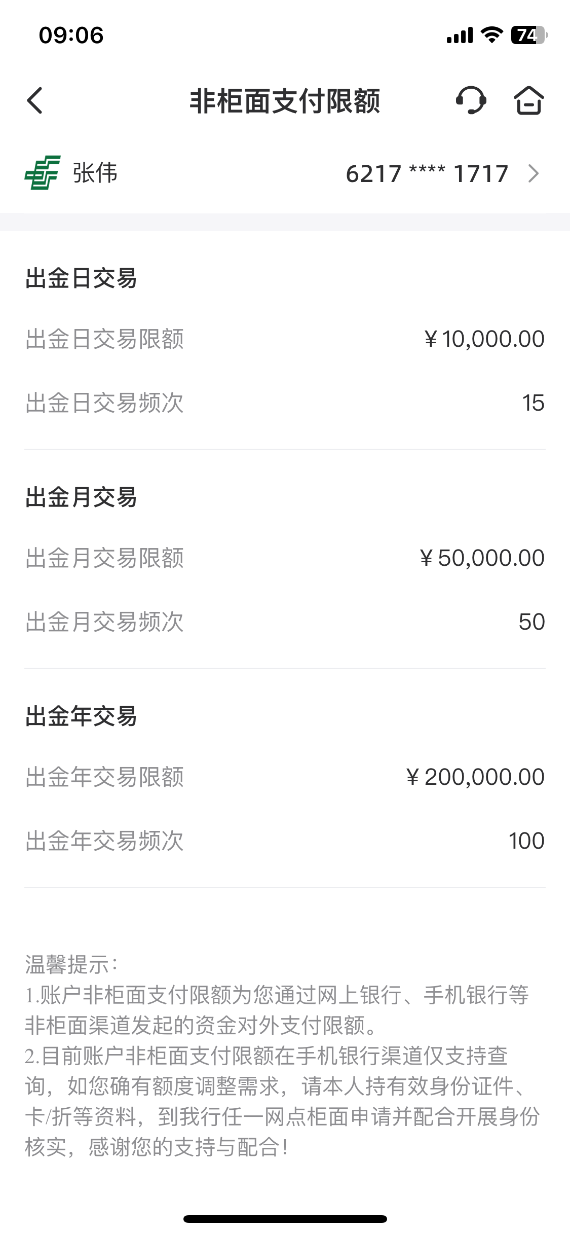 去银行调整一下就可以了 限额这是 最近好多邮政的都是这样 我的原来一天只给我用10次