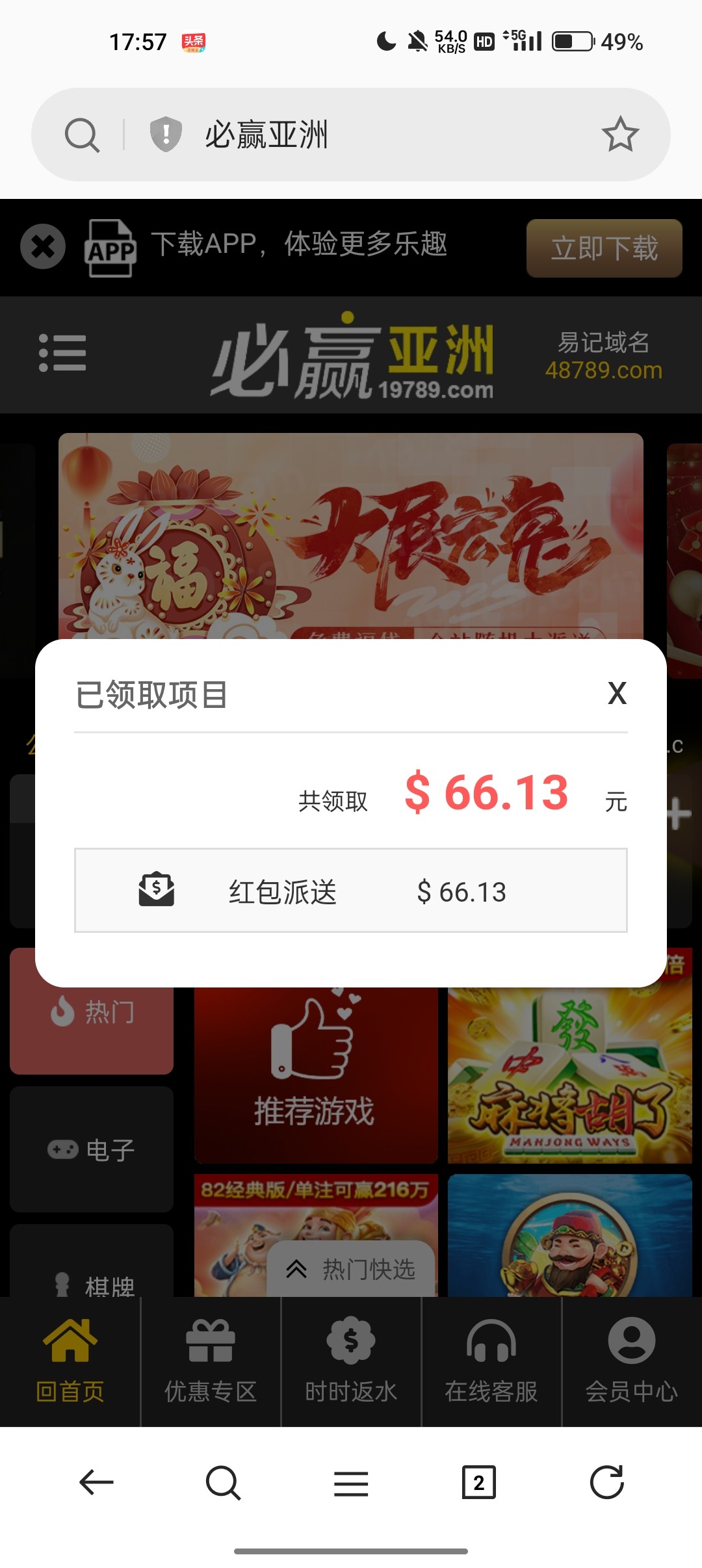 必赢用户回馈彩金到了